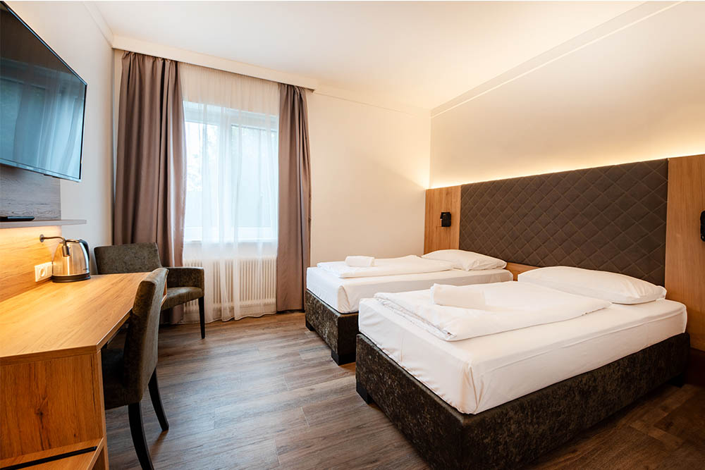 Unsere gemütlichen Standardzimmer sind als Einzel-, Doppel- oder Dreibettzimmer buchbar und