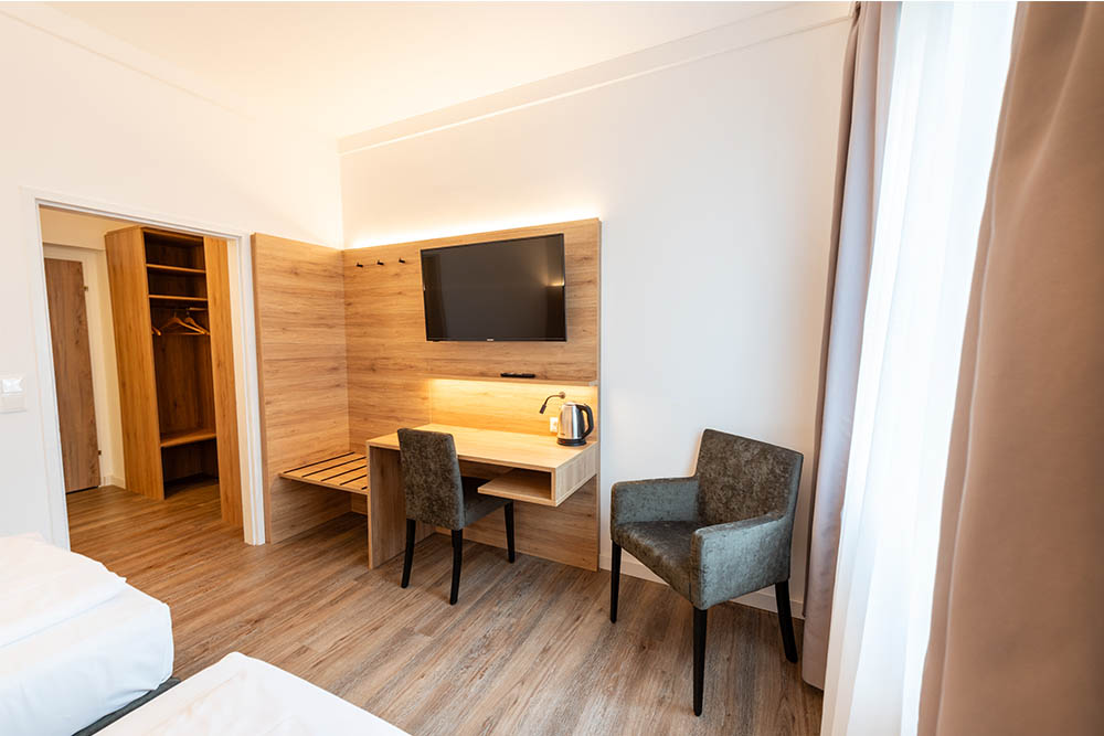 Alle unsere Zimmer sind neu renoviert (2025) mit Flachbild – TV, kostenfreiem W-Lan, Hygienebereich mit Dusche, Handtüchern, Föhn sowie teilweise mit Klimaanlage und Pflegeprodukten ausgestattet. Unser Parkplatz, unmittelbar vor dem Hotel, steht für Sie kostenlos zur Verfügung.